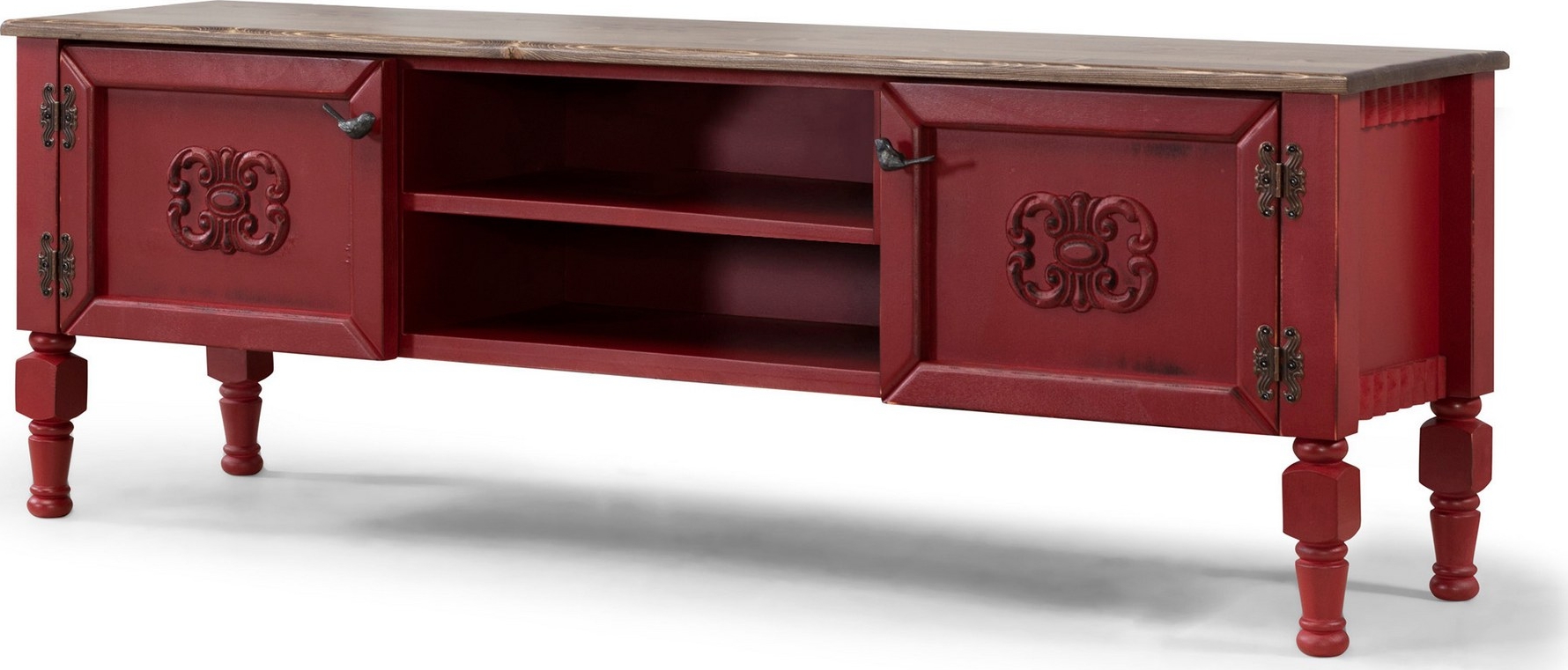 MDF-mediapenkki sarveisjaloilla ja kuusenpäällä.