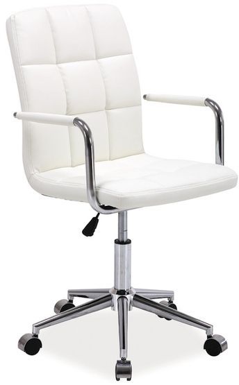 Mukava toimistotuoli modernilla designilla. Runko on valmistettu kromatusta metallista ja istuin on verhoiltu todella miellyttävällä keinonahkalla lopullisen mukavuuden takaamiseksi. Istuin on helposti säädettävä istuimen alla olevan vivun avulla. Tuoli on myös helppo siirtää jalkaristikon alla olevien pyörien ansiosta.