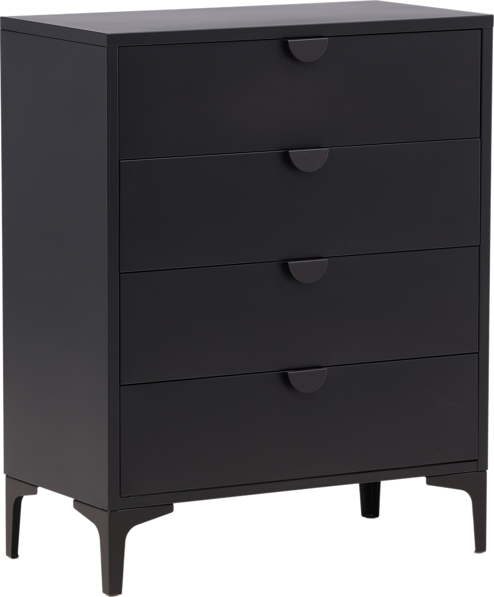 Täydellinen lipasto älykkääseen säilytykseen. Alexanderilla on vankka ja klassinen musta teräsrakenne - hyvin harkittu muotoilu, joka kestää ajan kokeen. Toimistossa on neljä laatikkoa piilosäilytykseen ja se sopii täydellisesti sekä makuuhuoneen vaatekaappiksi että olohuoneen säilytystilaksi. Kaappia nostavat kapeat jalat luovat ilmavan tunteen ja helpottavat myös pölynimurin käyttöä. Tyylikäs ja älykäs - mitä muuta tarvitset?