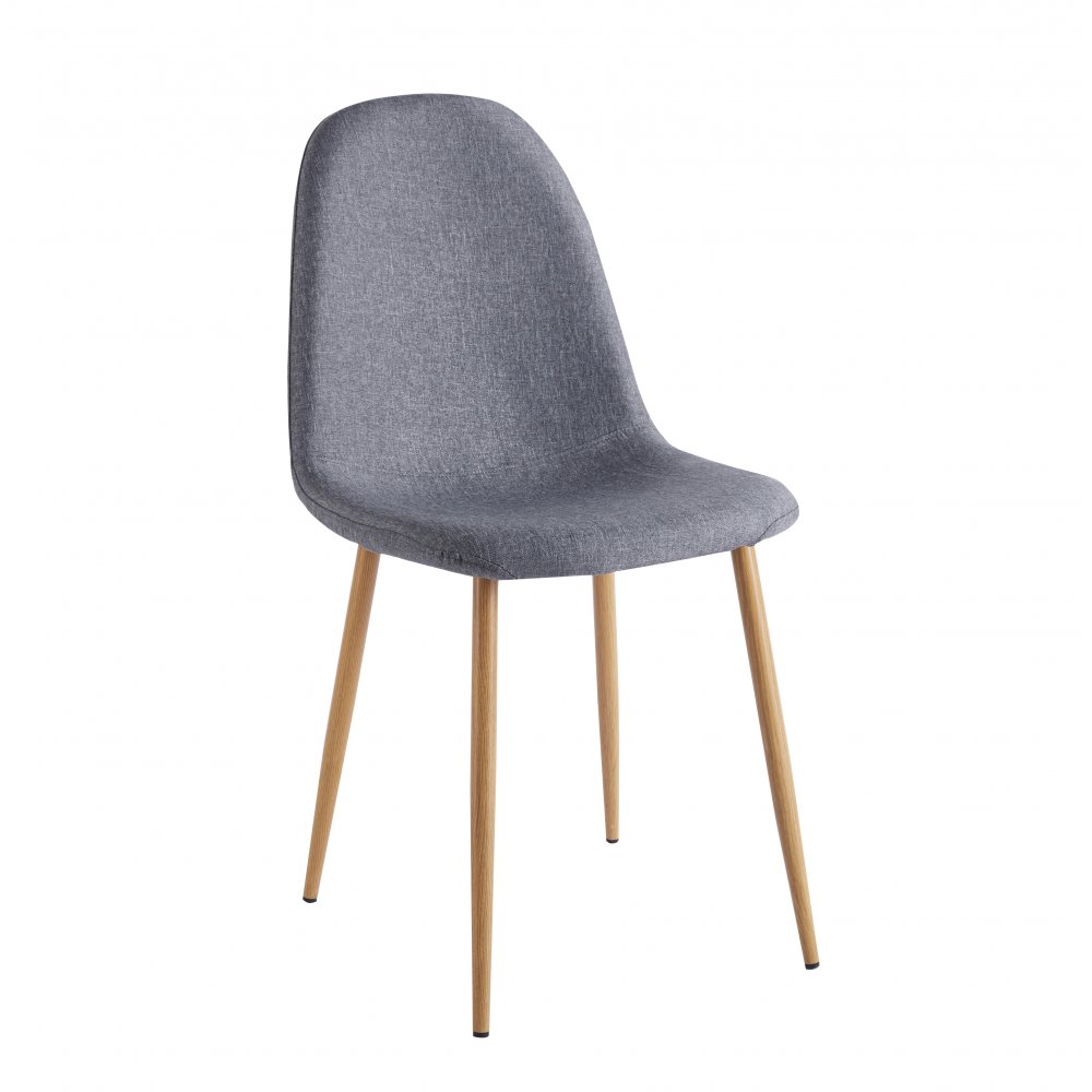 Alfred-ruokatuoli tyylikkäässä modernissa harmaassa kankaassa ja hiotulla metallijalalla.