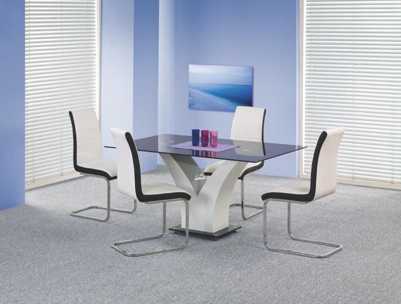 Tyylikäs ja moderni ruokapöytä. Runko on valmistettu valkolakatusta MDF:stä todella hienolla muotoilulla ja pöytälevy on mustaa lasia.