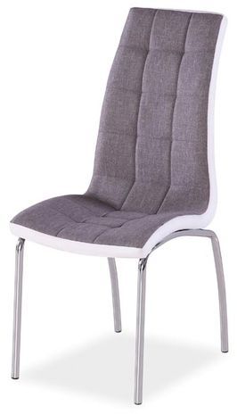 Kaunis ruokatuoli, jossa on moderni muotoilu. Alavaunu on valmistettu kromatusta metallista ja istuin on verhoiltu ihanalla yhdistelmällä kangasta ja keinonahkaa maksimaalisen mukavuuden takaamiseksi.