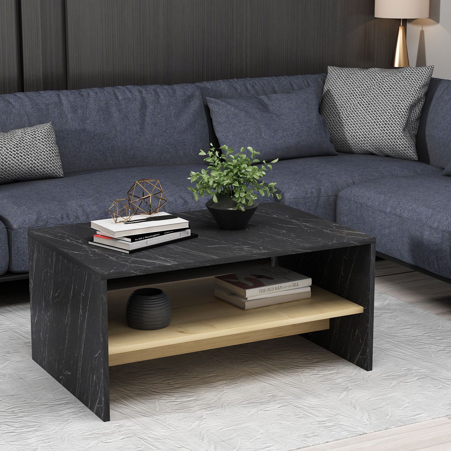 Apollon sohvapöytä 90 x 45 cm - Musta marmori/safiiri/tammi