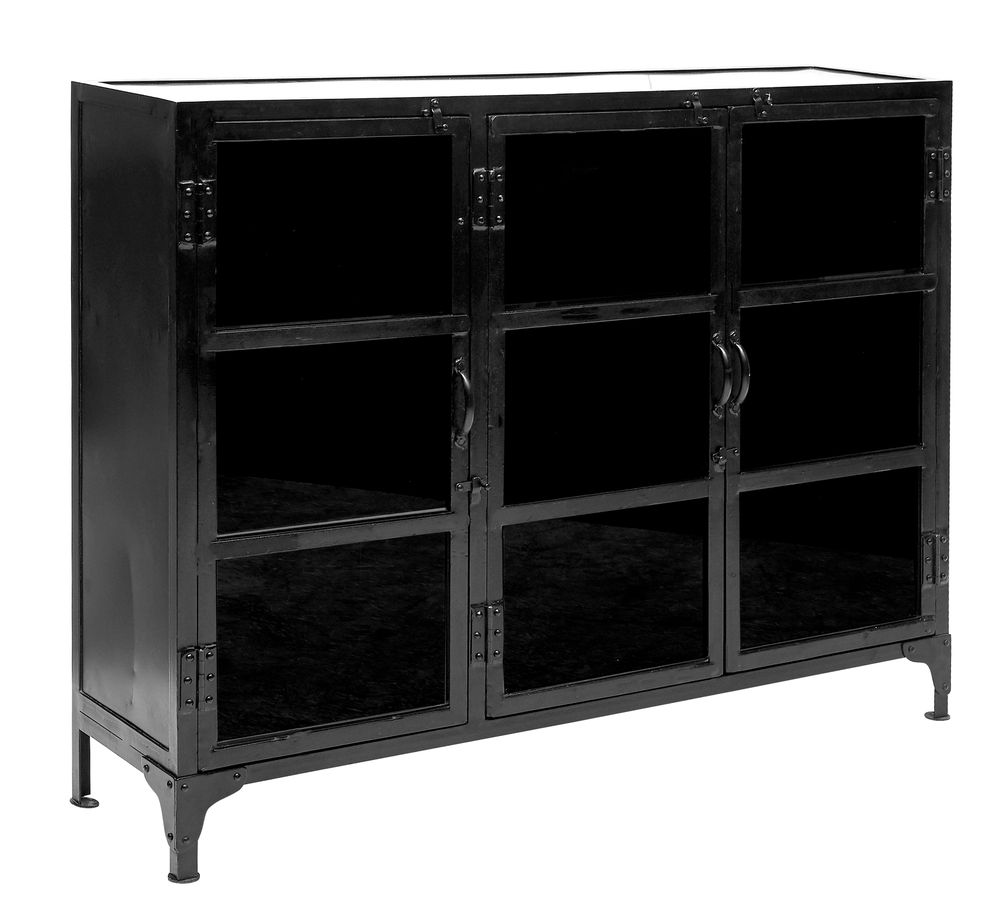 Senkki on mustaksi maalattua metallia, 3 lasiovea. Tarjoaa paljon säilytystilaa. Huonekalu antaa rustiikkisen tunnelman materiaalivalinnallaan. Tukeva ja kestävä.