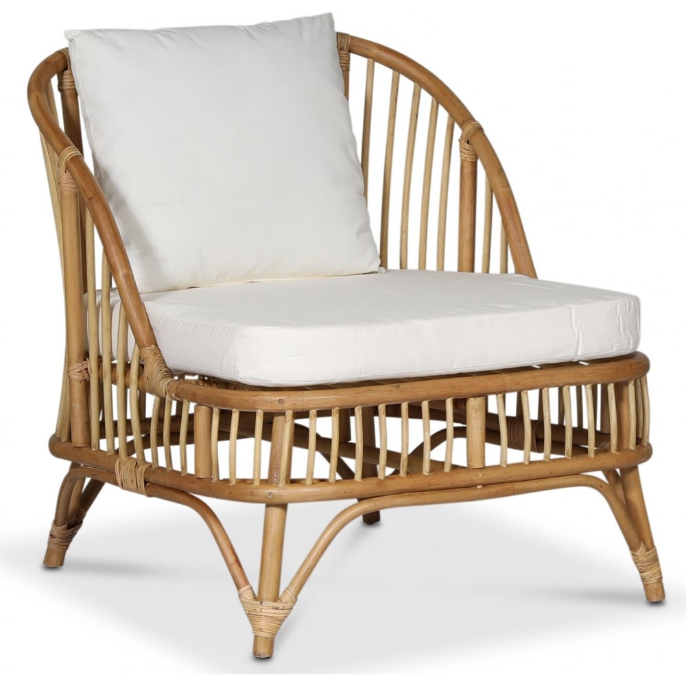 Baboo on luonnonmateriaaleista valmistettu sarja upealla patinalla ja muotoilulla. Nojatuoli aidosta rottingista ja vaalealla tyynyllä.