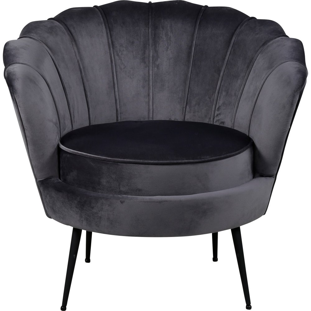 Metallista valmistettu nojatuoli, päällystetty polyesterikankaalla.