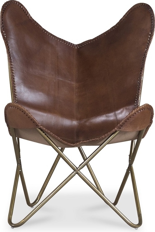 Baltimore-lepakkonojatuoli - Ruskea, aitoa nahkaa / messinki: