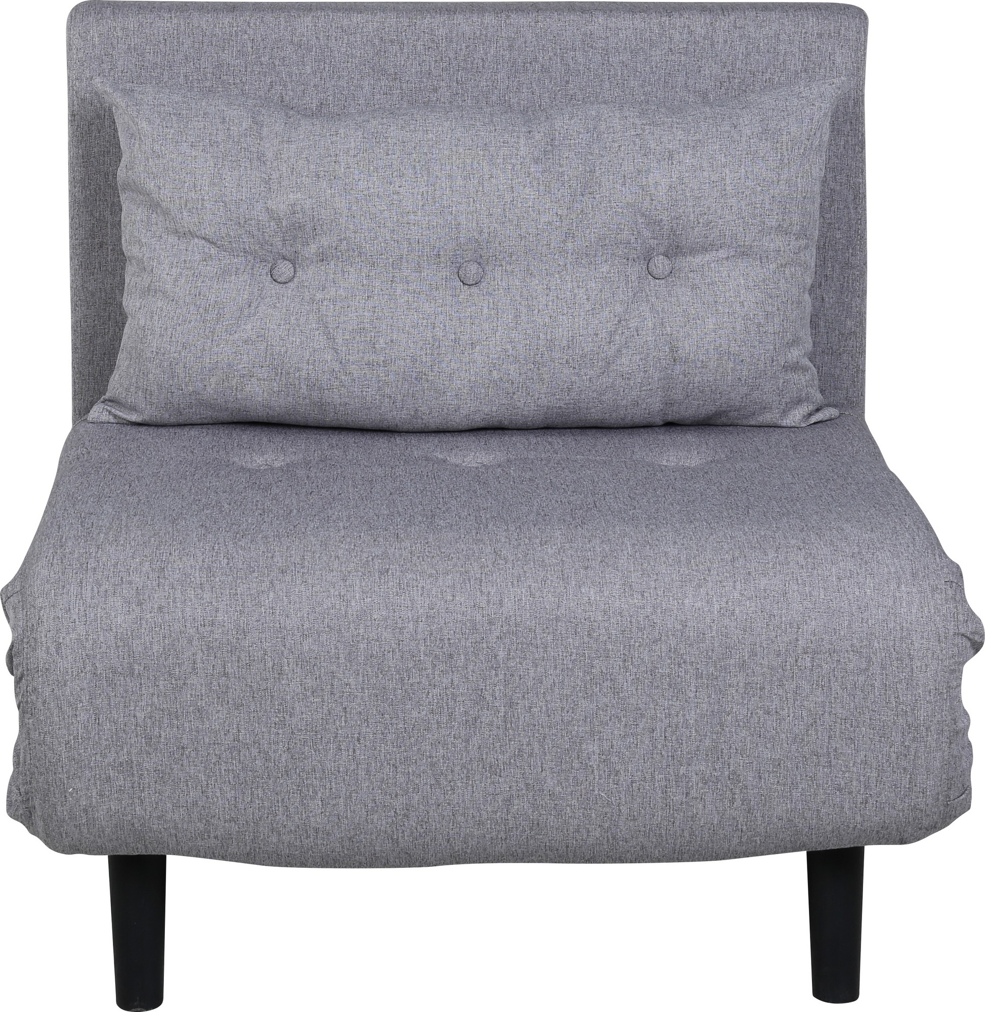 Metallista valmistettu nojatuoli, päällystetty polyesterikankaalla.