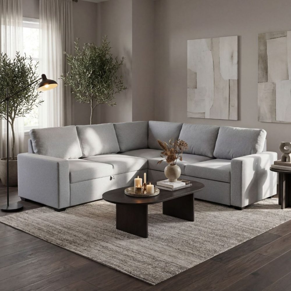 Belissa vuodesohva kulmasohva, eteenpäin levitettävä - Harmaa (kangas)