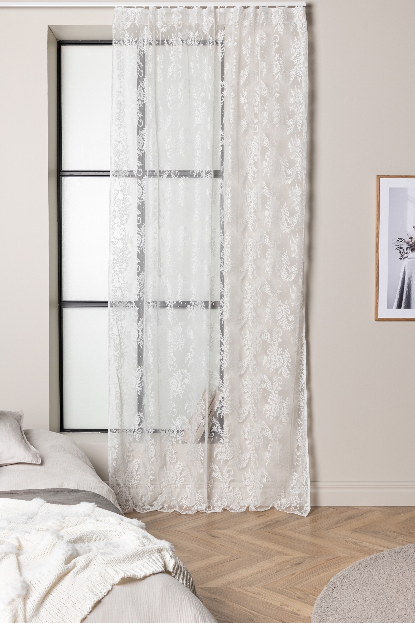 Verhon pituus läpinäkyvää polyesterimateriaalia pitsillä.