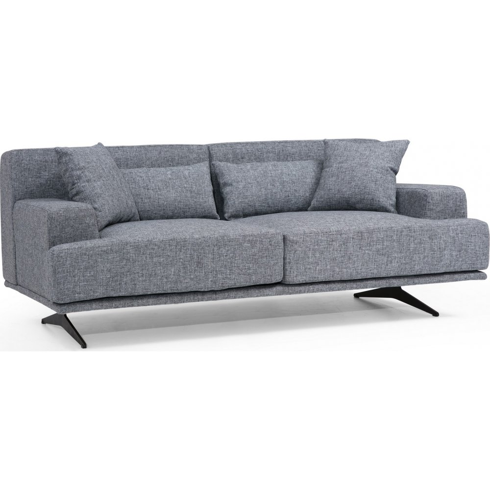 Pyökkipuusohva, metallijalat ja polyesteriverhoilu. Sohvassa on kiinteät selkänojatyynyt, irrotettavat istuintyynyt ja kemiallisesti puhdistettava kangas.