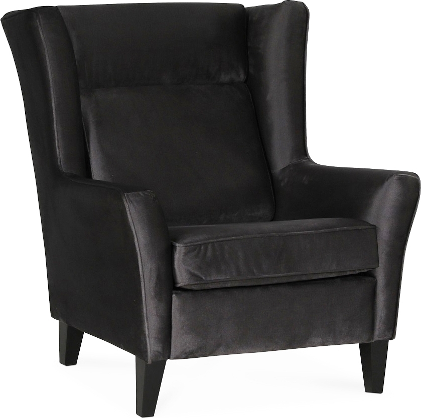 Berta on klassinen nojatuoli antrasiitinvärisellä, samettia muistuttavalla kankaalla. Sekä klassinen että retro muotoilu. Mustat massiivipuujalat. Hyvä istumamukavuus upealla kylmävaahtomuovipehmusteella pitkän käyttöiän takaamiseksi.