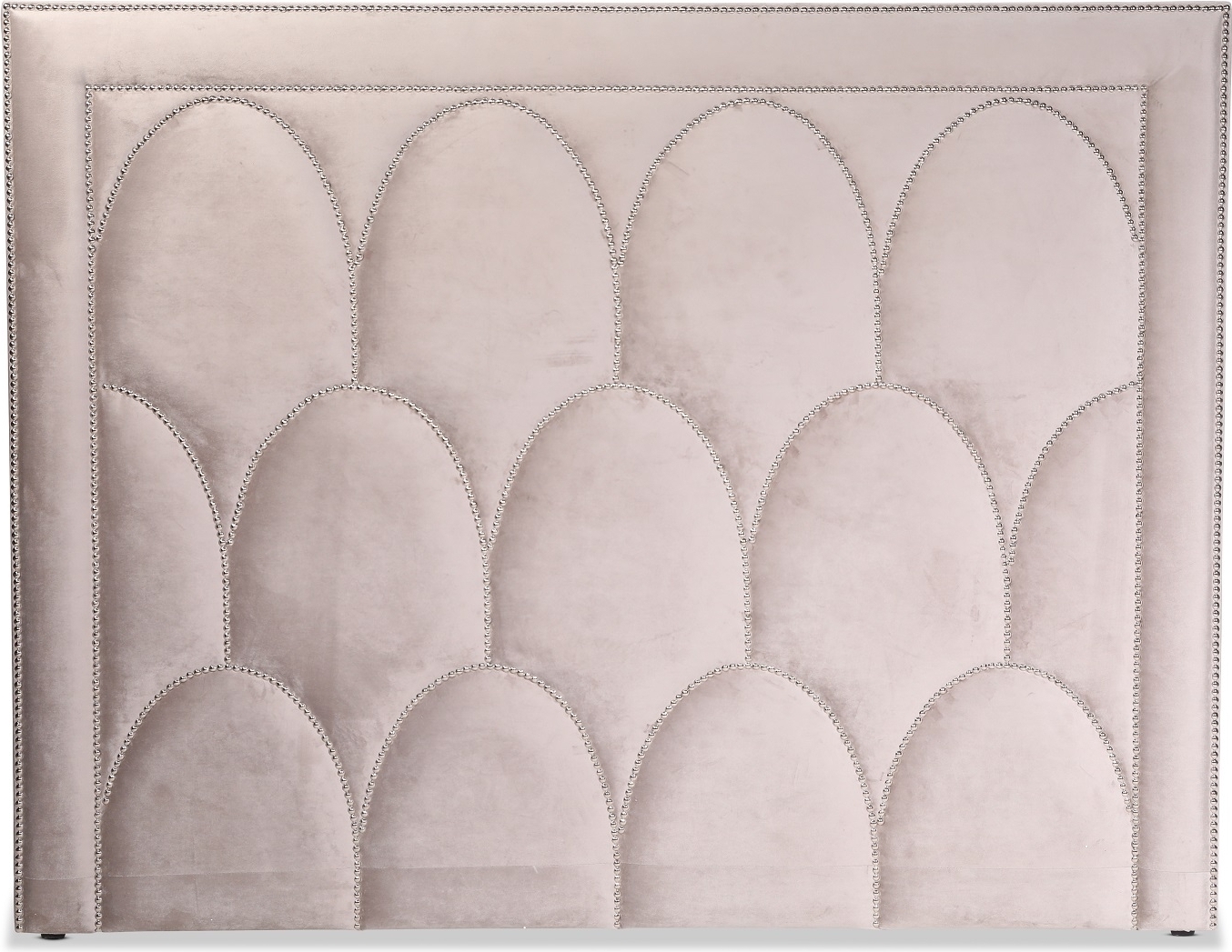 Bianca-sängynpääty harmaabeigellä samettikankaalla, joka on pehmeää ja laadukasta. Sängynpäädyn toteutus tuo luksusta ja hohtoa makuuhuoneeseen kromatuilla niitellä.