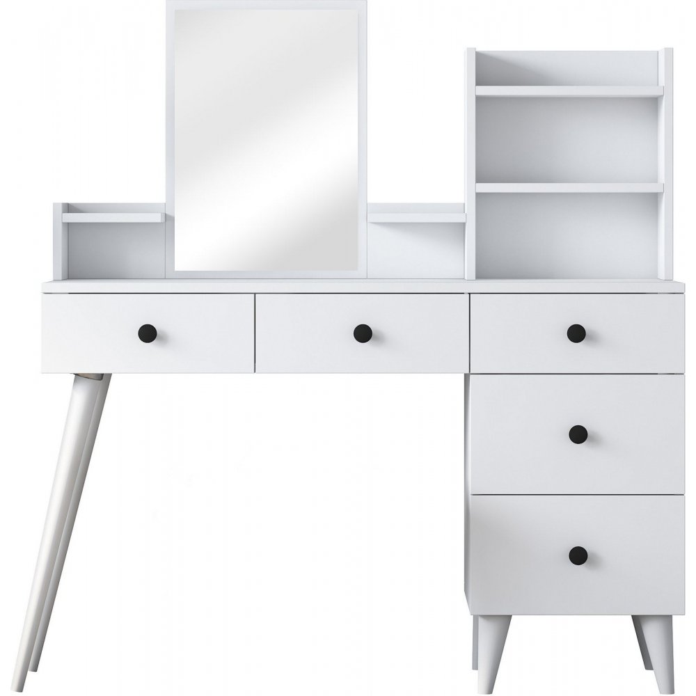 Leveys 122,2 cm, korkeus 93,8 cm ja syvyys 40 cm, joten peilipöytämme tarjoaa runsaasti tilaa kaikille kauneustuotteillesi. Peili, jonka leveys on 35 cm ja korkeus 50 cm, tarjoaa täydellisen heijastuksen virheettömään käyttöön.