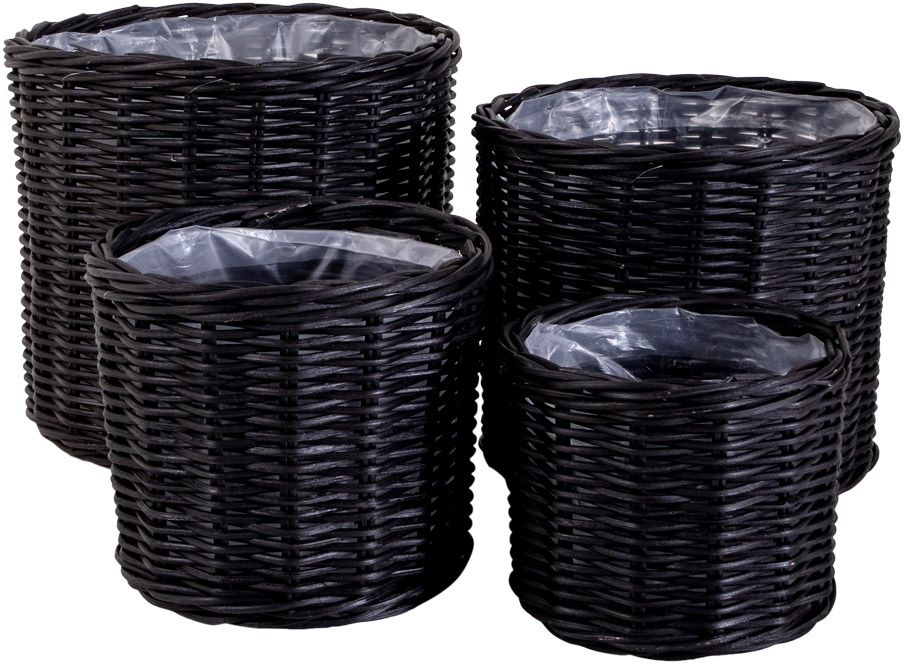 4 mustaa koria, joissa muovinen sisäpuoli.