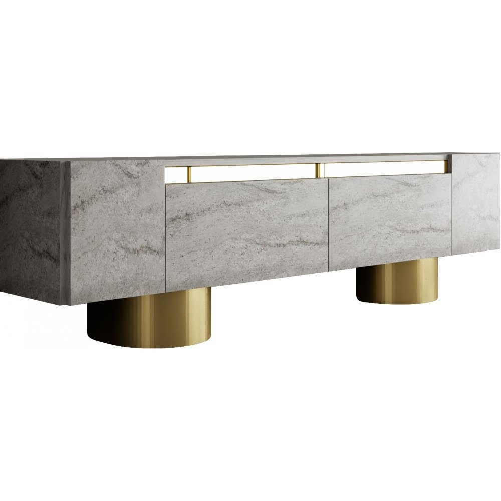 Mediapenkki melamiinipinnoitettua lastulevyä ja metallia.