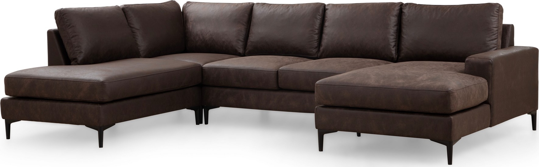 U-muotoinen sohva pyökkipuusta ja lastulevystä. Polyesteripäällinen ja muoviset jalat. Kiinteät istuin- ja selkätyynyt.