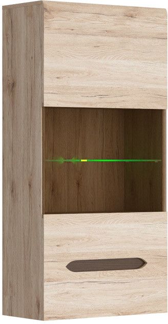 Jäljitelmä seinäkaappi. Oven etuosassa on lasiosa ja kahva on integroitu. Kaappi on varustettu hyllyillä, joista yksi on lasia. Erittäin toimiva kaappi monella tapaa, ei vähiten siksi, että se on seinälle ripustettu, mikä säästää tilaa lattialla.