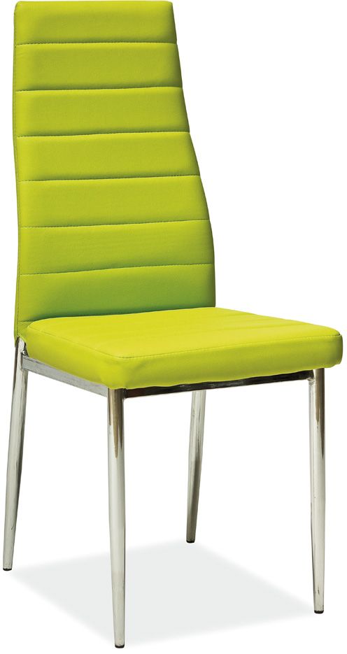 Tyylikäs ruokatuoli, jossa on moderni muotoilu. Jalusta on valmistettu kromatusta metallista ja istuin on päällystetty erittäin miellyttävällä keinonahalla maksimaalisen mukavuuden saavuttamiseksi.