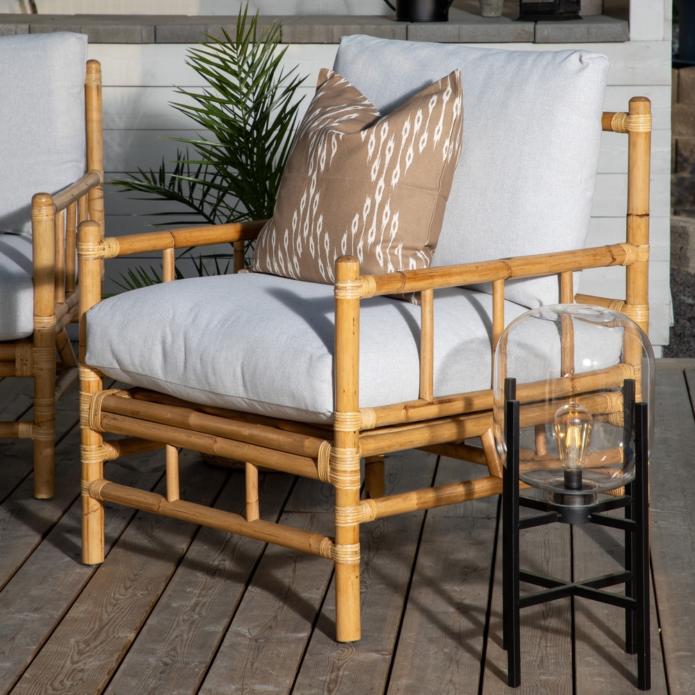 Luonnonväriset bambusta valmistetut lepotuolit tuntuvat juuri sopivalta uima-altaan riipukseen! Sisusta patio mukavasti, kutsuvasti ja tyylikkäästi tuolilla, joka tekee vaikutuksen. Cane lepotuoli luo rauhaa koko kehoon - harmoniaa! Hoito-ohjeet: Bambu on luonnonmateriaali, joka on uskomattoman tyylikäs ja trendikäs, mutta ei erityisen säänkestävä. Rottinkikalusteita ei mielellään jätetä ulos, vaan ne tulee sijoittaa kuiviin tiloihin. Vältä suuria lämpötilaeroja. Helpoin puhdistus tehdään kostealla liinalla.