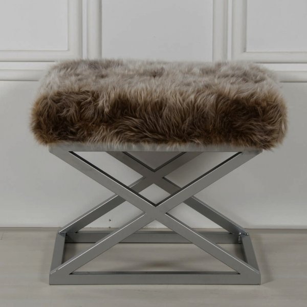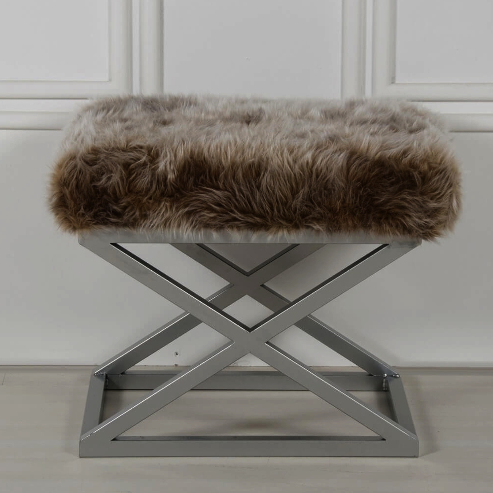 Pouf valmistettu metallista polyesteriverhoilulla.