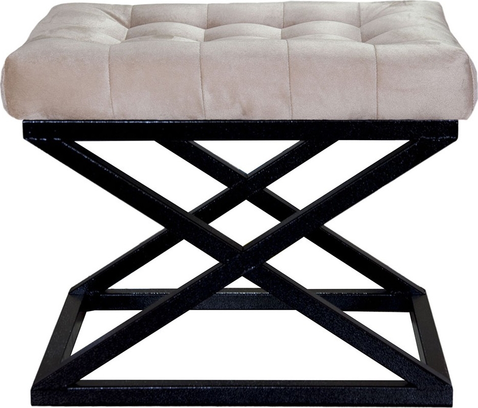 Pouf valmistettu metallista polyesteriverhoilulla.