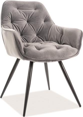 Metallinen ruokapöydän tuoli. Päällystetty polyesterillä jäljitelmässä samettia.