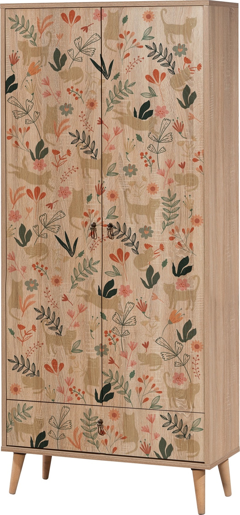 Lastulevyvaatekaappi massiivipuisilla jaloilla.