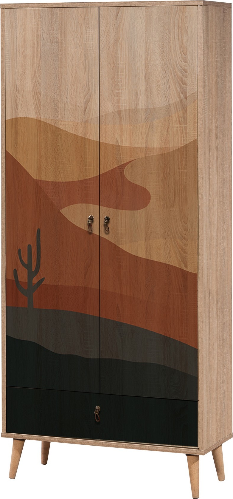 Lastulevyvaatekaappi massiivipuisilla jaloilla.