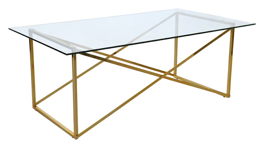 Cross on helposti sijoitettava, Art deco -tyylinen sohvapöytä. Pöytälevy on lasia ja runko on kiiltävää messinkiväriä!