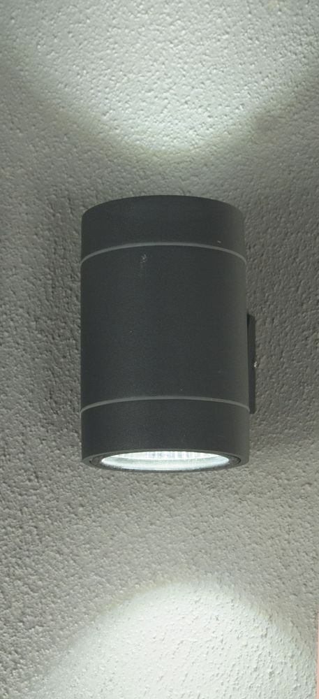 Ulkoseinävalaisin tummanharmaata metallia. Helposti kiinnitettävä talon seinälle.