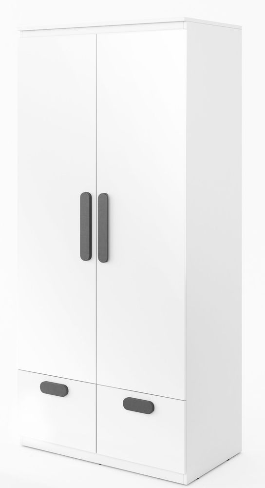 Tyylikäs ja moderni vaatekaappi. Valmistettu MDF:stä kiiltävän valkoisella etuosalla ja varustettu todella hyvillä säilytystiloilla kahden kaapin ja kahden laatikon muodossa.