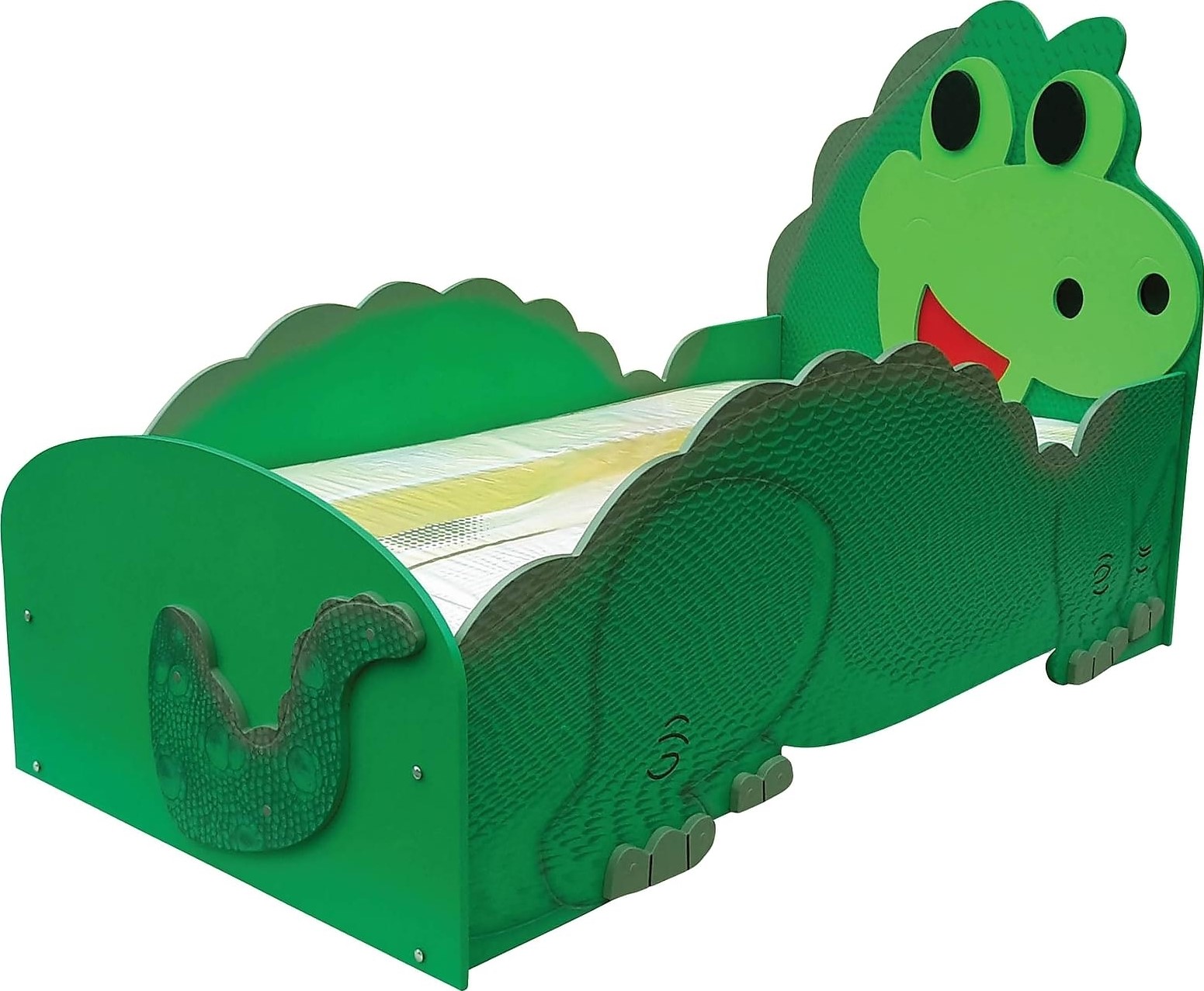 Söpö vihreä sänky iloisen dinosauruksen hahmolla. Kukapa ei haluaisi käpertyä ystävällisen dinosauruksen luo yöllä? Sänky on valmistettu MDF:stä ja siinä on pienet jalat ja häntä. Mukana puuvilla- ja polyesteripatja.