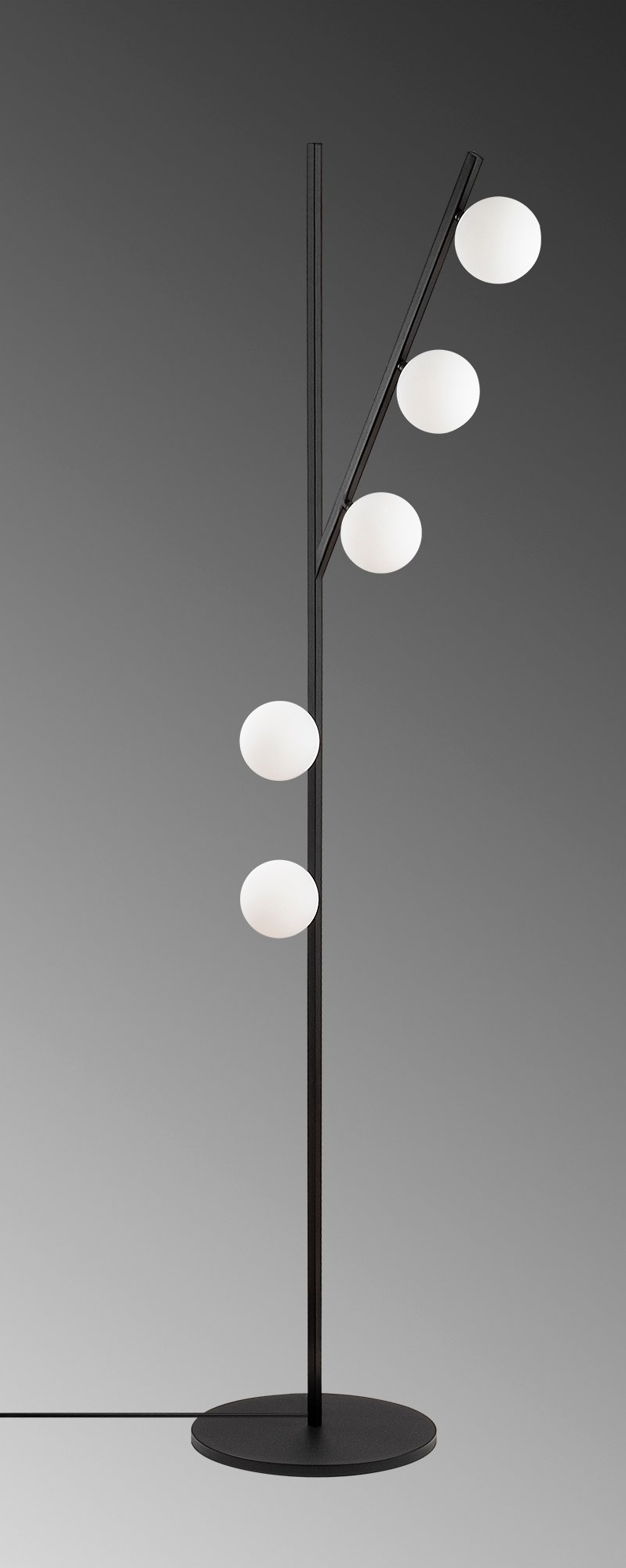 Metallista ja lasista valmistettu lattiavalaisin. Valonlähde ei sisälly.