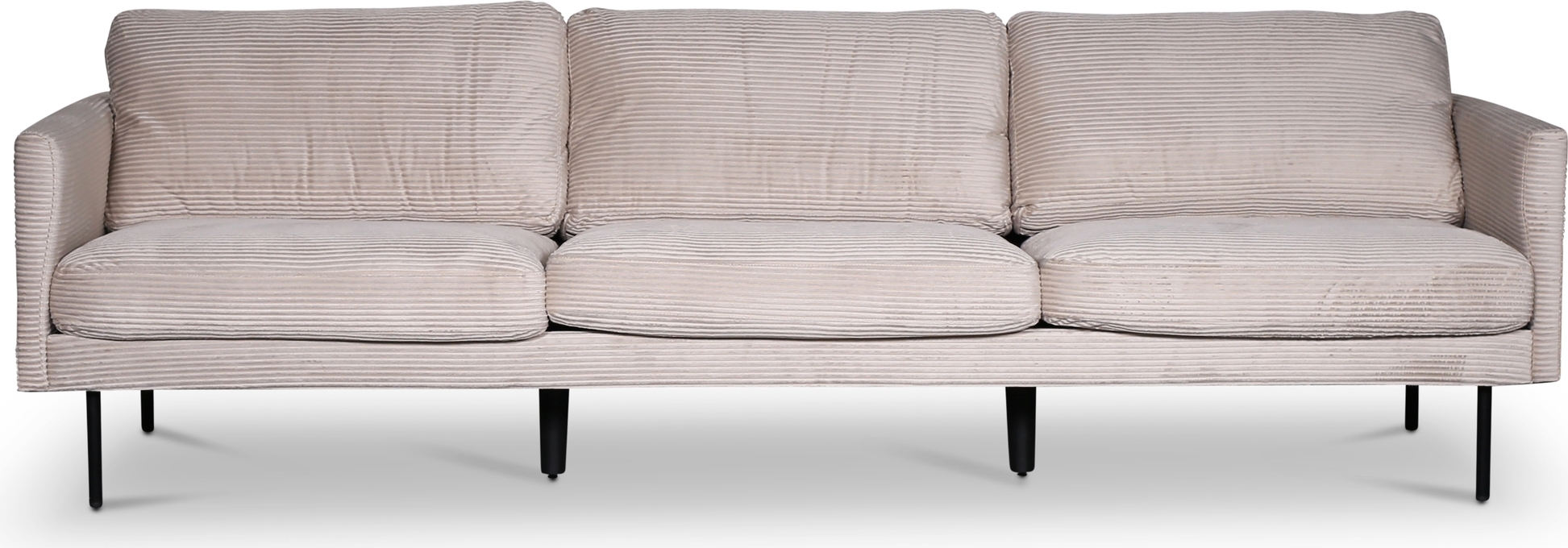 Eden on mukava ja tyylikäs 3-istuttava sohva, jossa on tyylikäs muotoilu. Pukeutunut beigeen pehmeään ja kestävään vakosamettikankaaseen. Sohvan jalat ovat mustaa metallia. Selkä- ja istuintyynyissä on irrotettava verhoilu.
