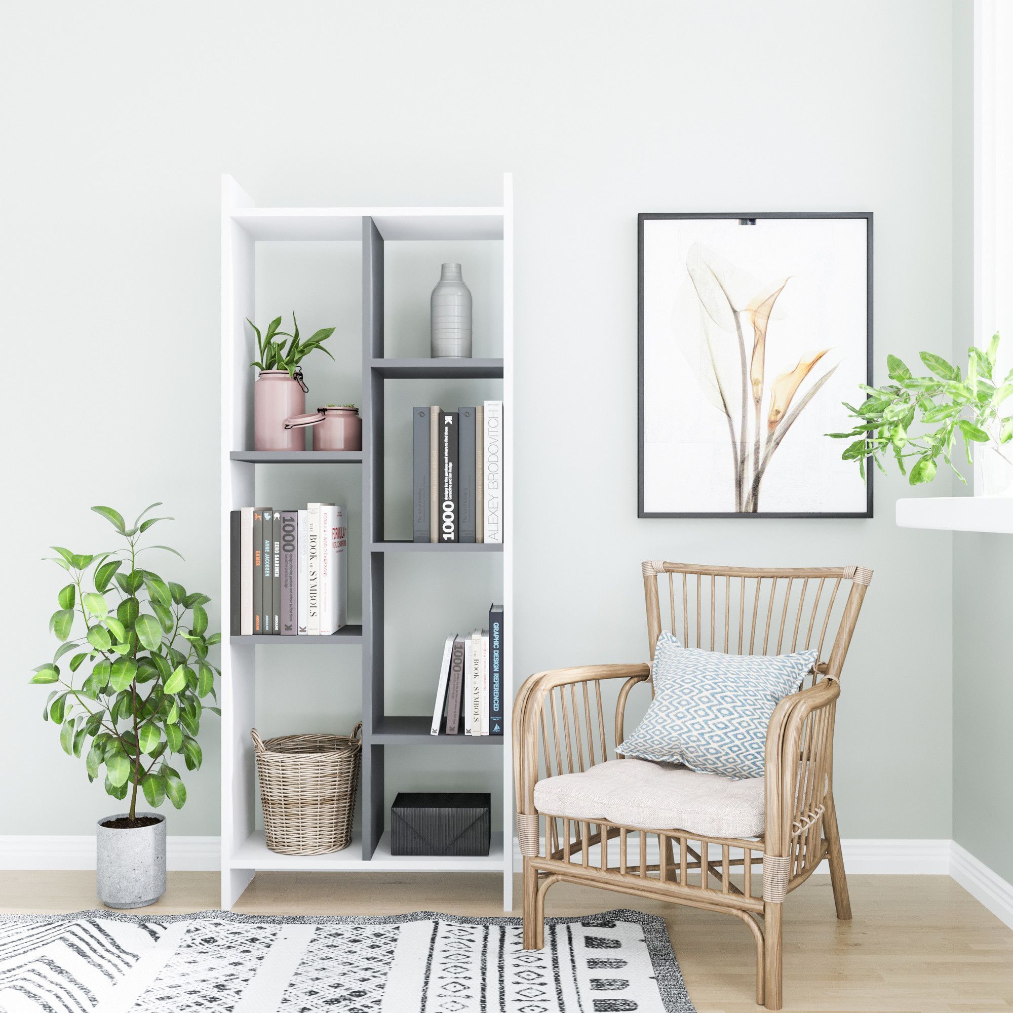 Eden kirjahylly - valkoinen/antrasiitti