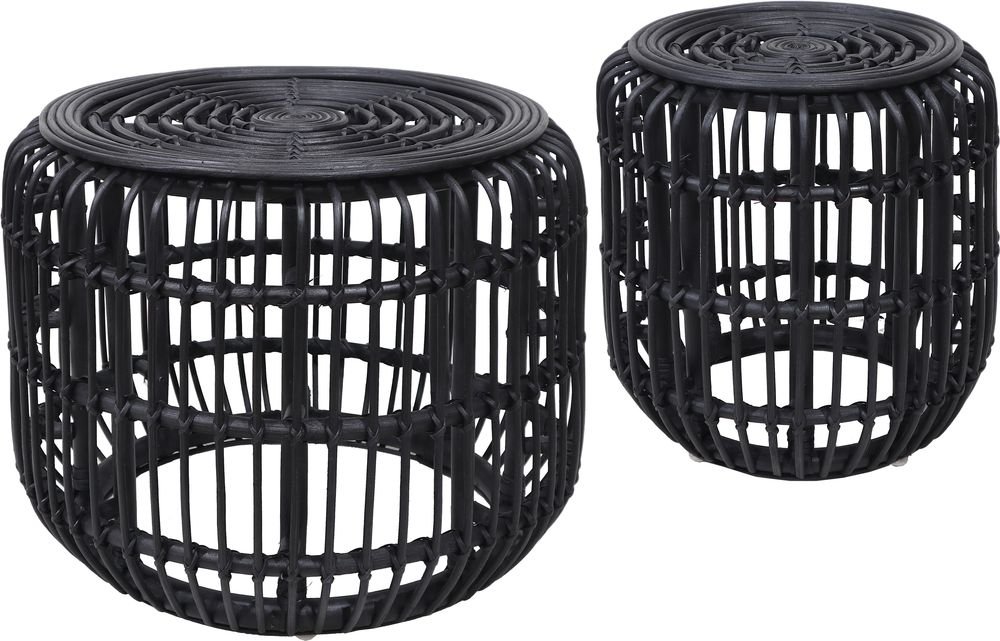 Edsta sohvapöytäsetti Ø60/45 cm - rottinki/musta: