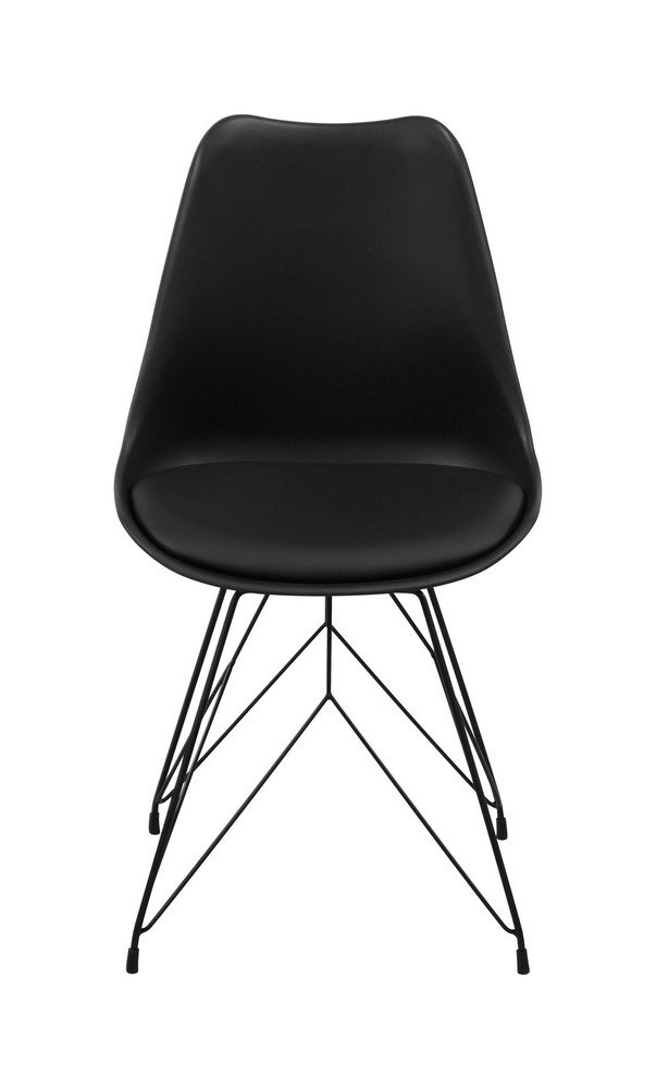 Tyylikäs PU-verhoiltu tuoli, jossa lakattu metallirunko ja kumijalat. Jalkojen muotoilu tekee tästä tuolista erityisen vakaan ja antaa sille myös elegantin ilmeen.