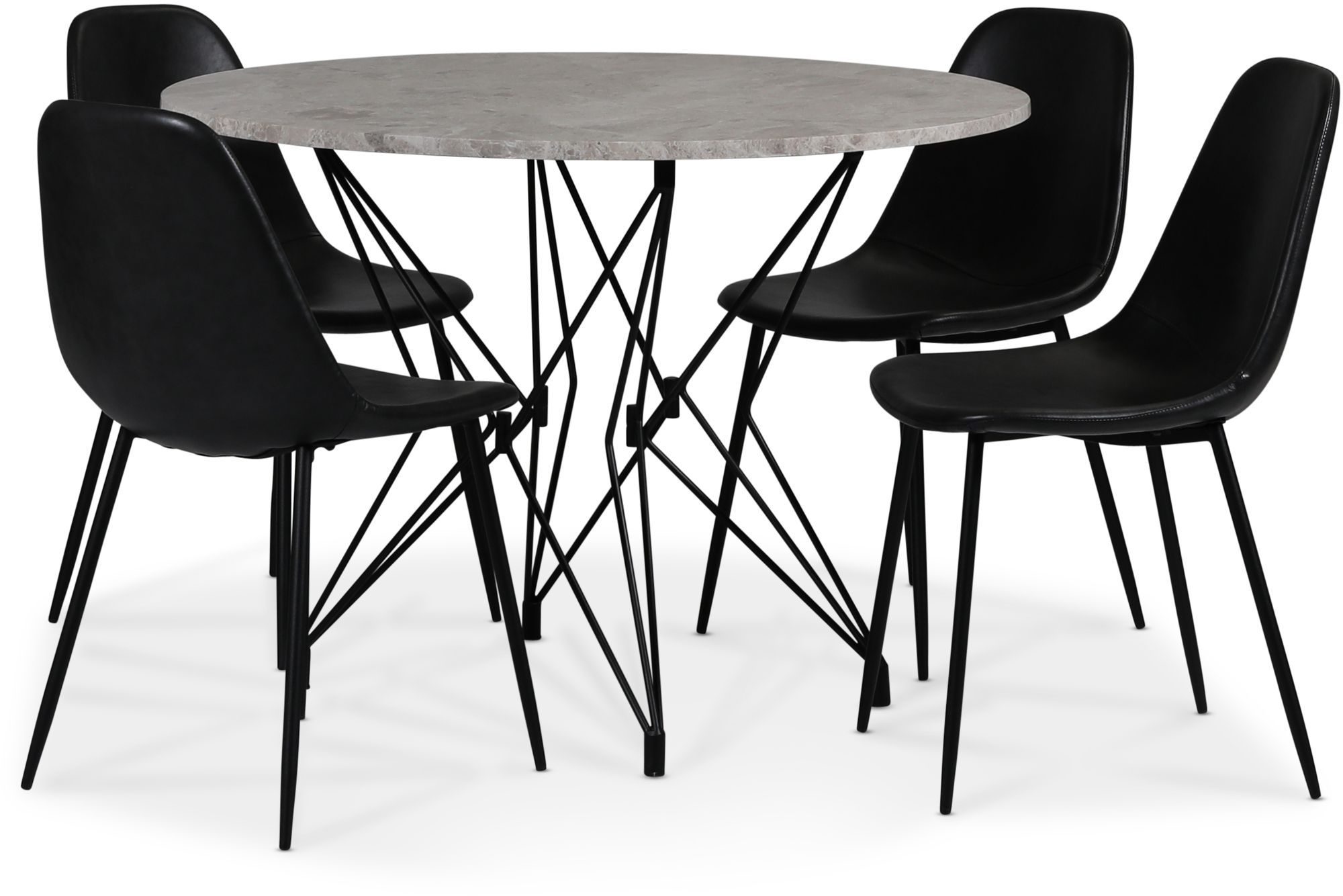 Eläintarhan ruokailuryhmä Ø105 cm sis. 4 Bjurträsk mustaa tuolia - Musta / hopeamarmori