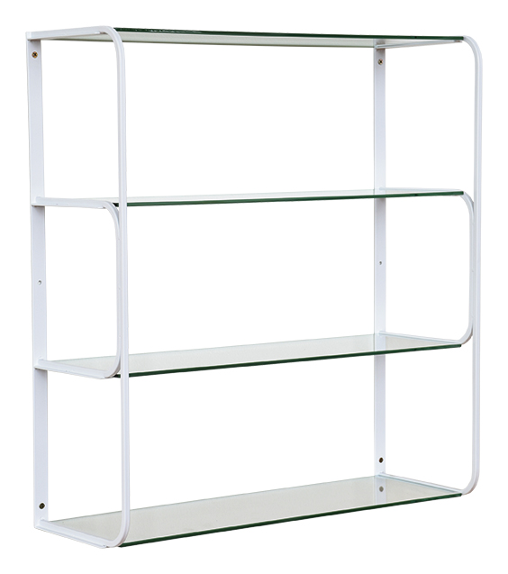 Laadukas huonekalu 4:llä hyllytasolla lasista. Tästä siististä ja tyylikkäästä seinähyllystä voi tulla huomisen klassikko.