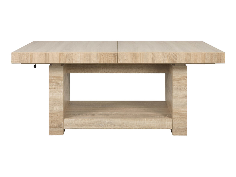 Vankka pöytä valmistettu MDF-levystä tammivärityksellä. Pöydän erikoistoimintojen avulla voit sekä nostaa että laajentaa pöytää.