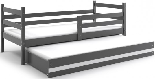 Perinteinen lastensänky irrotettavilla kaiteilla. Sanotaan, että aina on hyvä olla valmiina kaikkeen, kuten yllätysvierailuihin, ja siksi sängyn alla on ylimääräinen ulosvedettävä vieraspeti nuorille yövieraille.