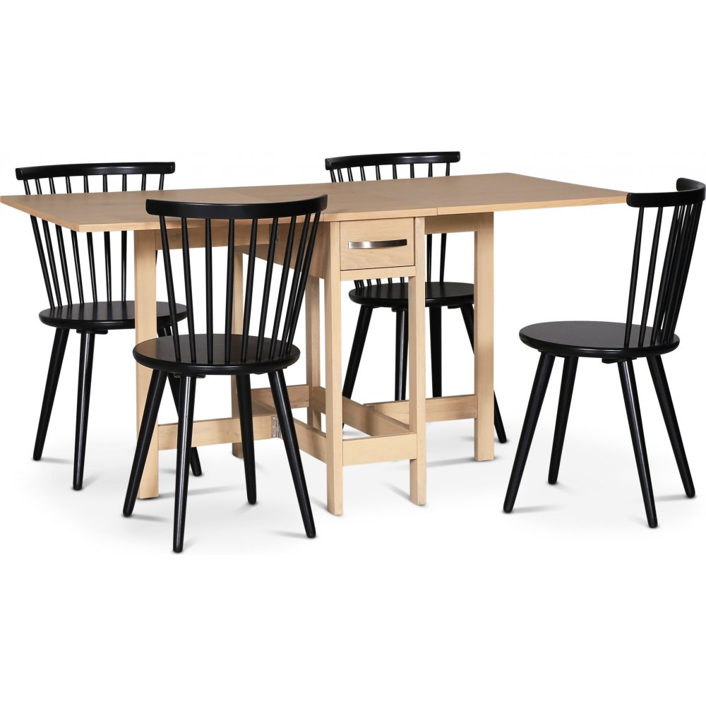 Fårö ruokaryhmä; Fårö Whitewash-taittopöytä ja 4 mustaa Castor-ruoko-tuolia
