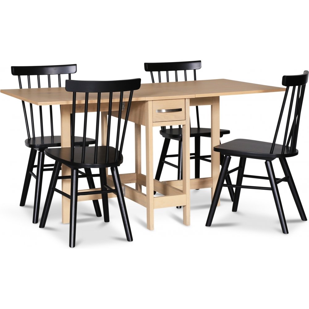 Fårö-ravintolaryhmä klassisessa designissa. Fårö taittopöytä ja 4 yhteensopivaa mustaa Orust-ruokotuolia.