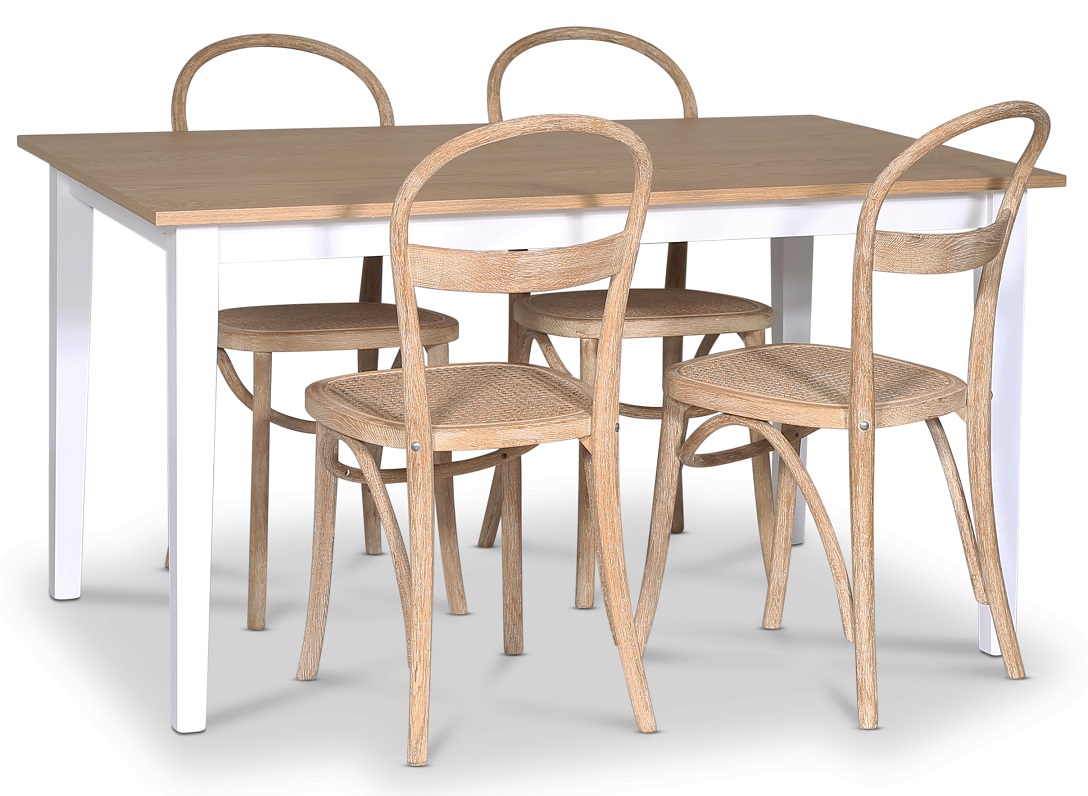 Fårö ruokaryhmä; ruokapöytä 140x90 cm - Valkoinen/öljytty tammi ja 4 Danderyd No.16 tuolia Whitewash