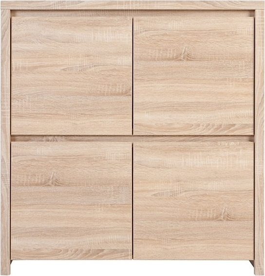 Mukava vaalea tammikaappi, jossa on neljä lokeroa, etuosissa integroidut kahvat, mikä on erittäin tyylikäs. Kaappi sopii yhtä hyvin ruokasaliin kuin olohuoneeseen!