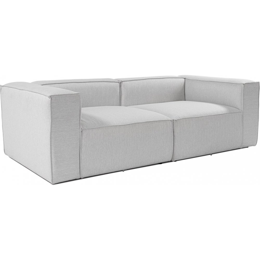 Sohva valkopyökistä, jossa pellavaverhoilu ja muovijalat.