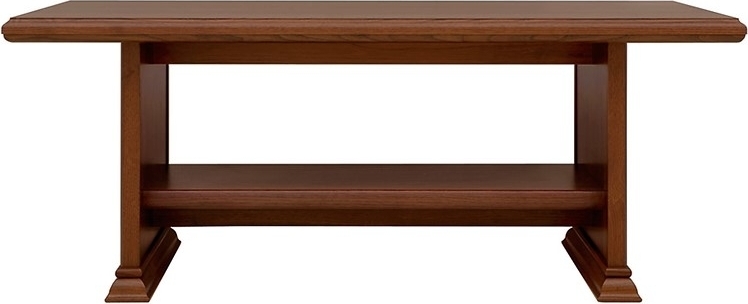 Hieno kastanjanvärinen sohvapöytä. Pöytä on varustettu käytännöllisellä hyllyllä, jossa voi säilyttää tavaroita, joita et halua pitää pöydällä.