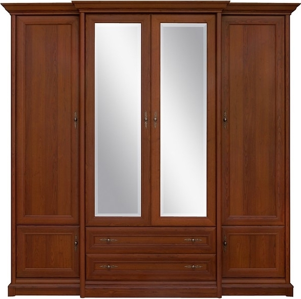 Iso ja tilava vaatekaappia koristeellisilla kahvoilla. Vaatekaapissa on neljä ovea, kahdessa keskimmäisessä ovessa on peilit etupuolella. Sisältä löytyy vaatetanko ja sivuilla hyllyjä. Alhaalta löytyy kaksi pienempää kaappia ja kaksi laatikkoa, joissa voi säilyttää pienempiä tavaroita.