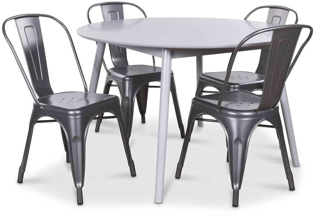 Göteborg ruokailuryhmä, harmaa pyöreä pöytä + 4kpl Industry-peltituolia - Harmaa / Metalli